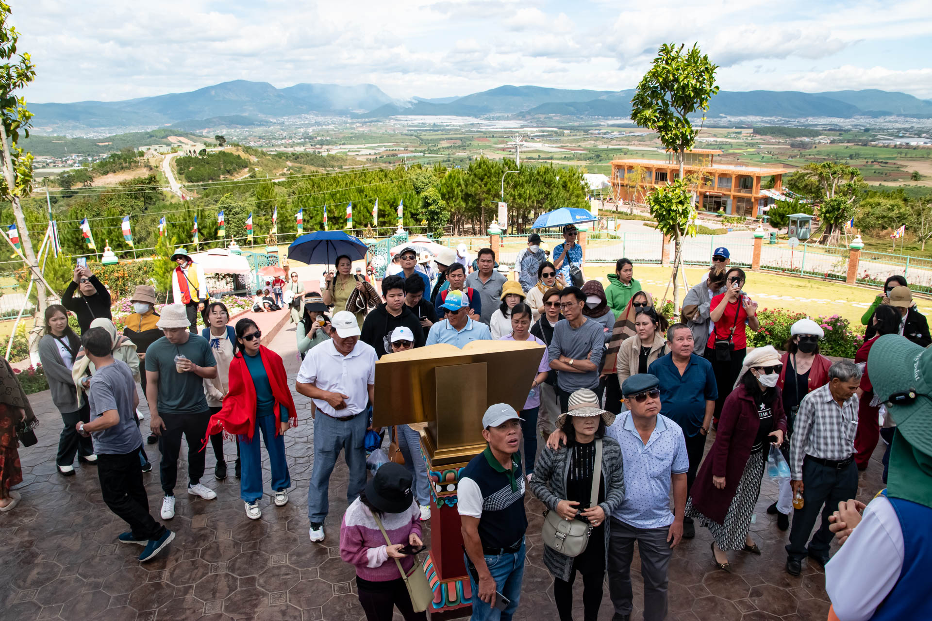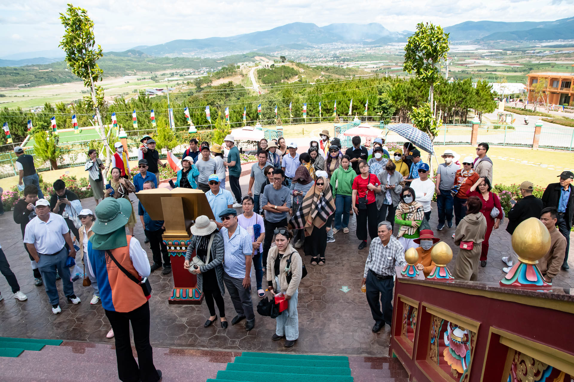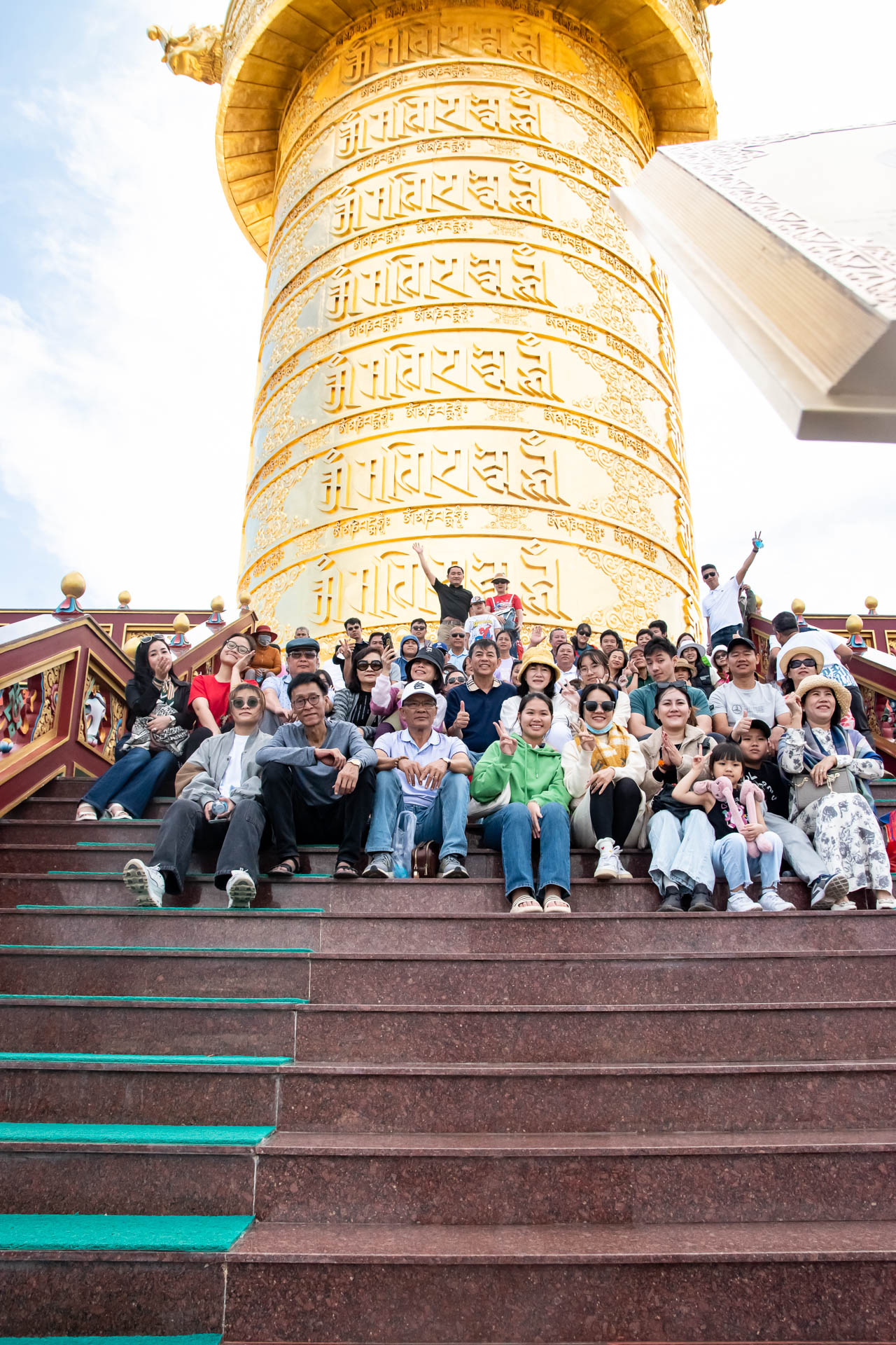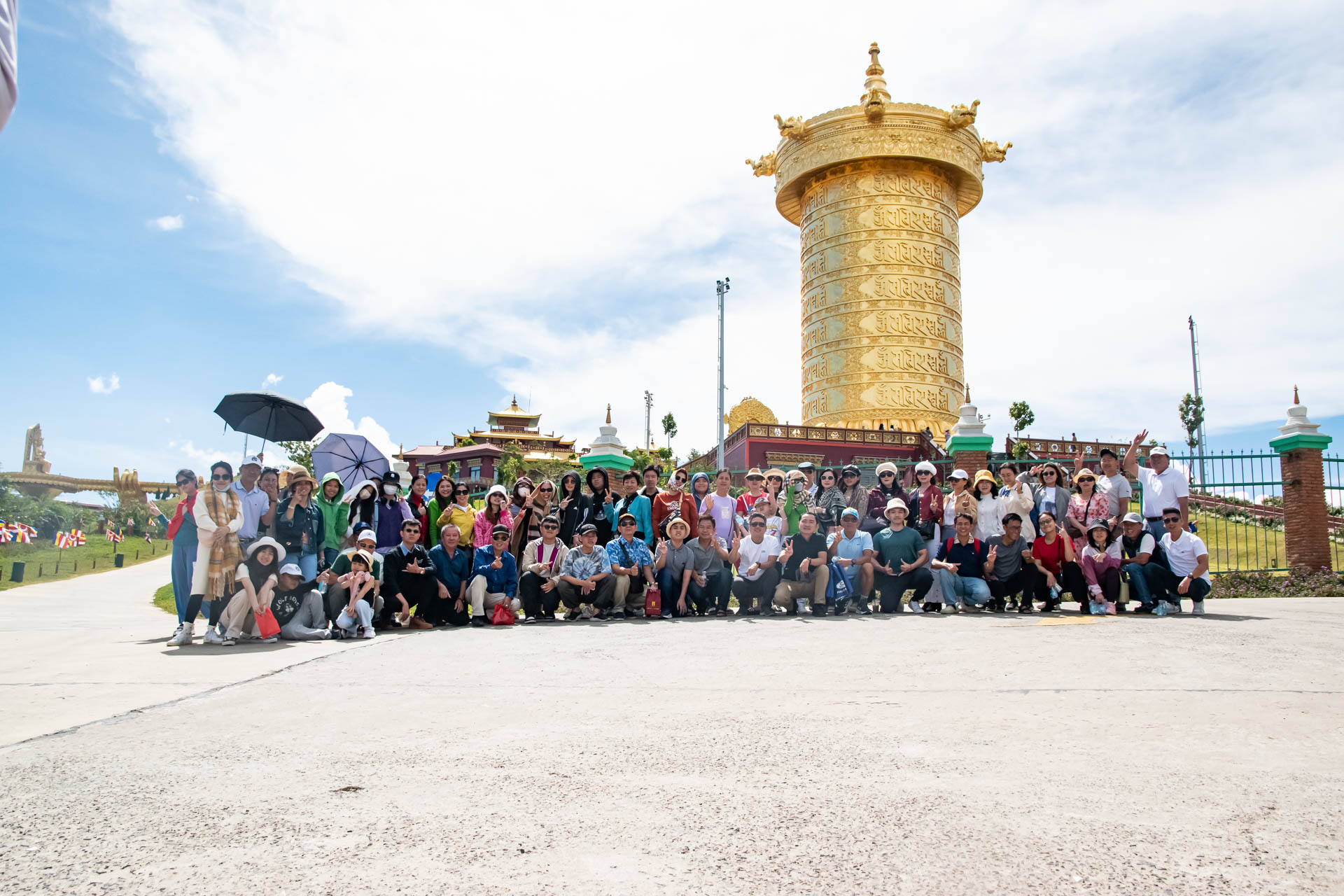 Giữa khung cảnh núi non hùng vĩ, cả đoàn cùng nhau dạo bước trong không gian thiền định, chiêm ngưỡng Bảo Tháp Kinh Luân lớn nhất thế giới, lắng nghe tiếng chuông gió khẽ ngân, hòa mình vào sự tĩnh lặng đầy an nhiên. Những giây phút ấy như đưa ta rời xa mọi xô bồ thường nhật, để tâm hồn nhẹ nhàng và thư thái hơn bao giờ hết.